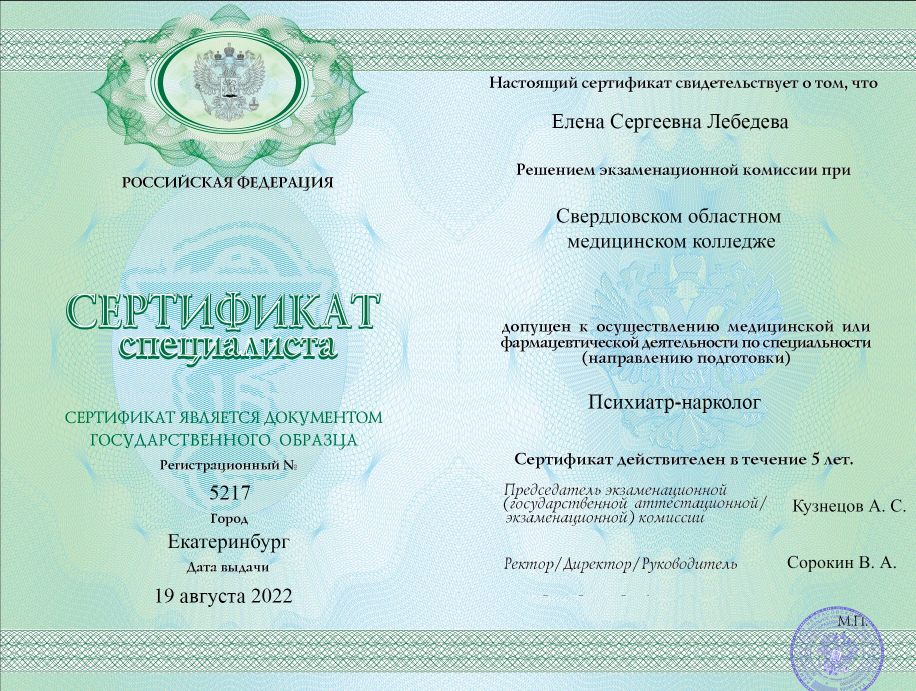 Елена Сергеевна Лебедева врач нарколог клиники доктора Стукаловой в Самаре